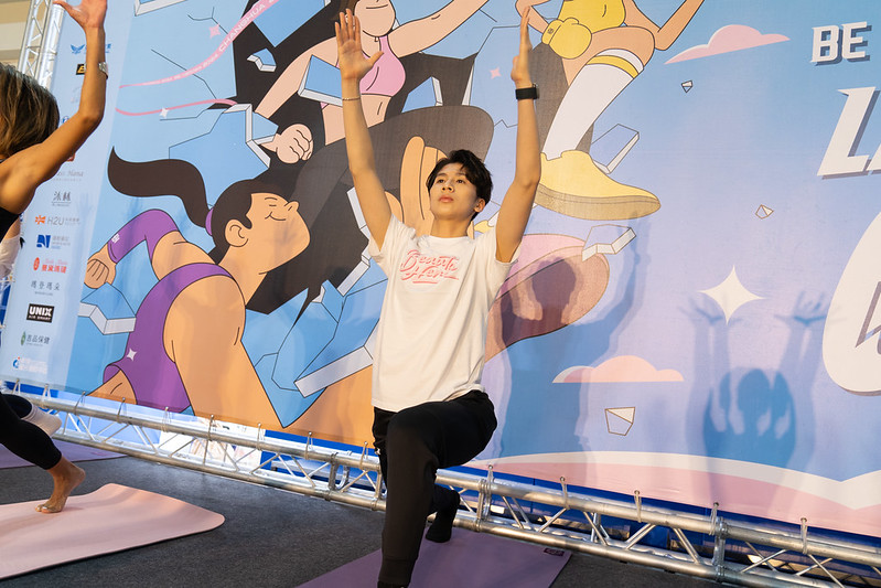今天在活動全程體驗瑜珈、有氧舞蹈各40分鐘,林郁婷直呼:「比我訓練還累很多!瑜珈比較不會接觸,但是看到大家跟我一樣,就算有點跟不上老師,還是很努力試著去做,我就覺得很棒。後面有氧舞蹈因為有些部分像拳籍步法,我就照平時訓練去跳。」