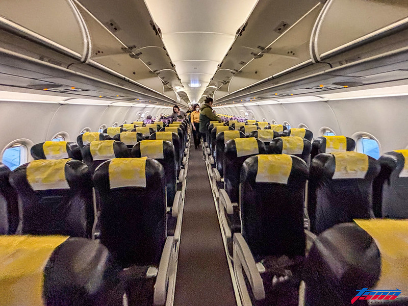虎航班機採用 3-3 座位配置,單一走道讓登機與下機流程更直觀;行李置物艙容量與一般同型機相當。客艙以黑色皮質座椅為主,清潔度在水準之上,頭枕與椅面舒適度對短程飛行來說非常舒適。