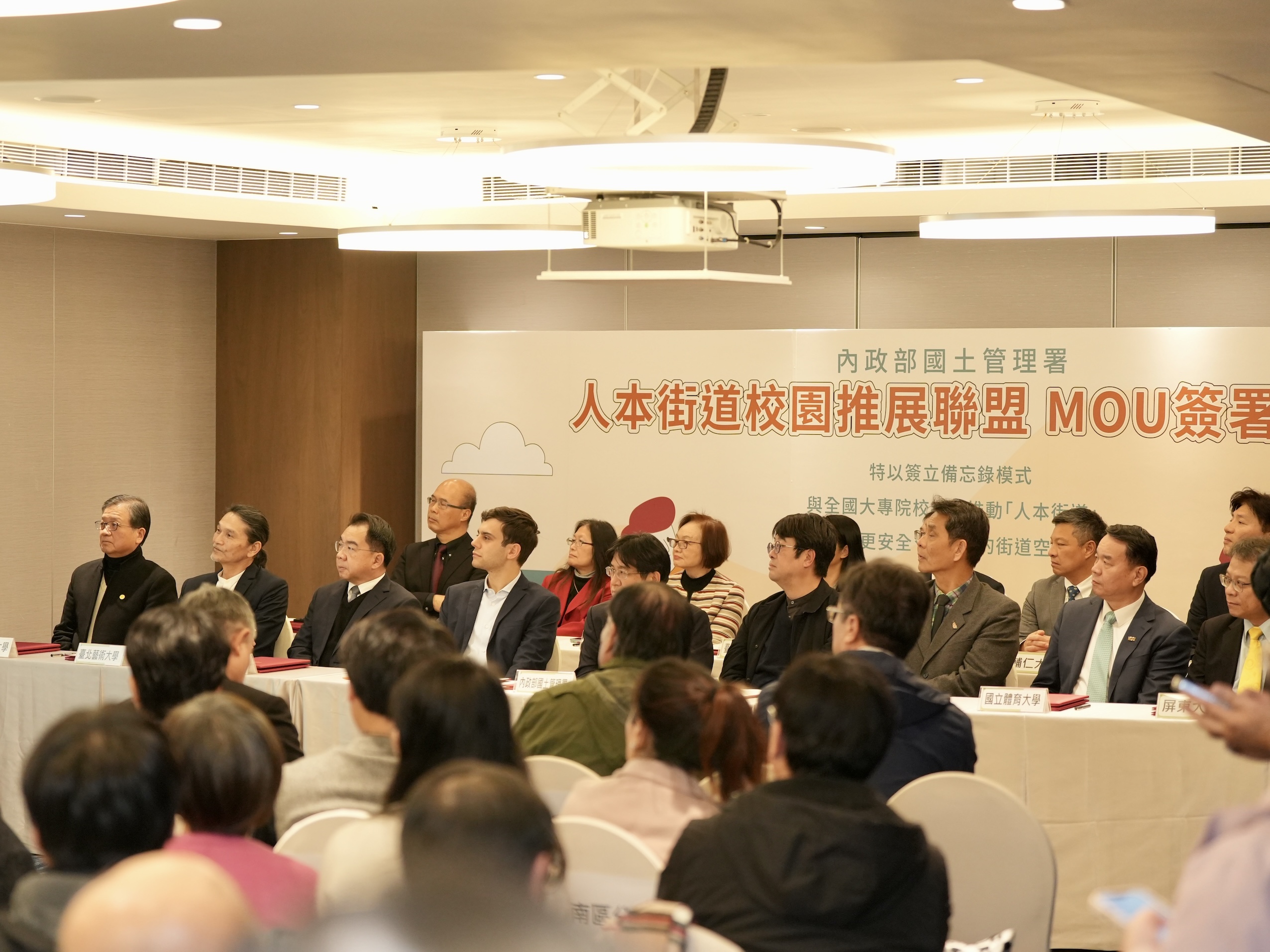 國土管理署今天舉辦「人本街道校園推展聯盟」MOU簽署記者會。(李宇政攝)